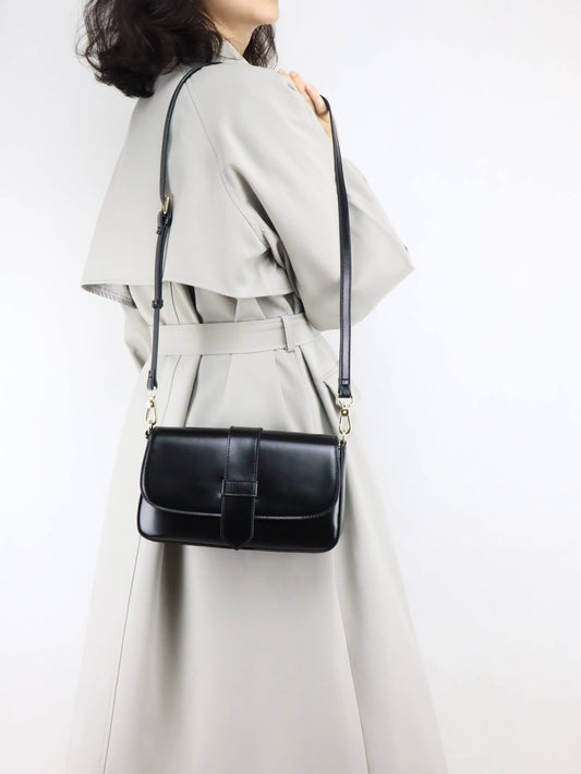 Black Leather Crossbody Bag + Long Trench Coat for Women