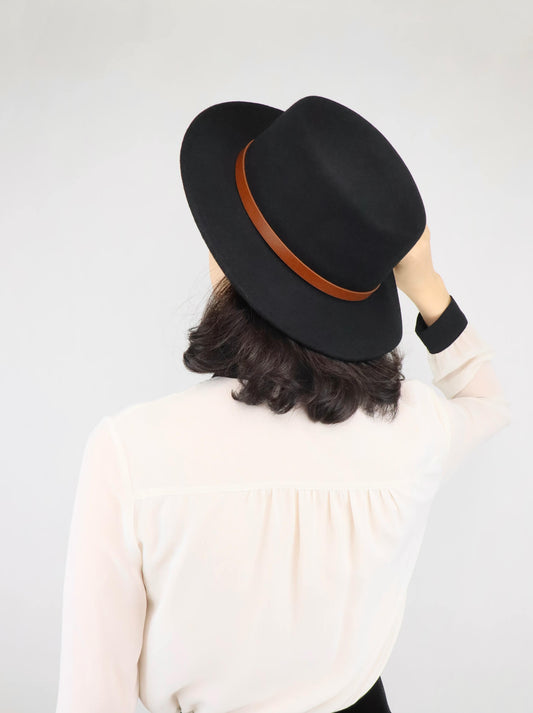 Black Fedora Hat for Women | 100% Wool Hat | Belt Buckle