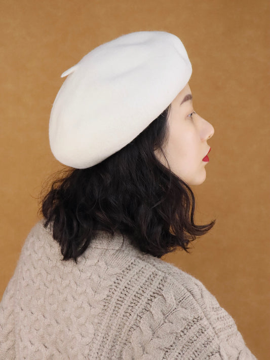 White Beret Hat for Women | Wool Hat