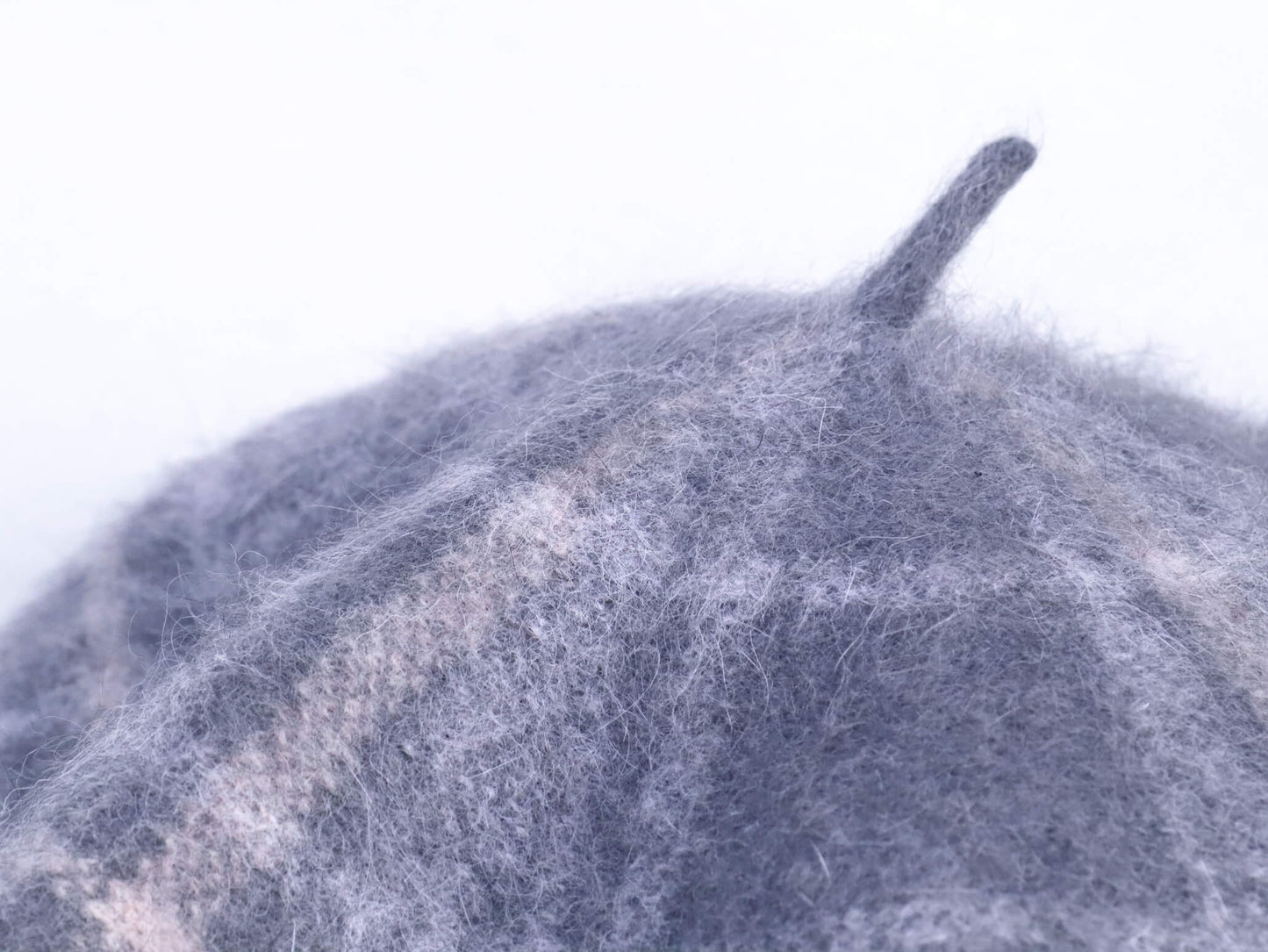 Wool Knitted Beret Hat for Women | Light Grey Tartan